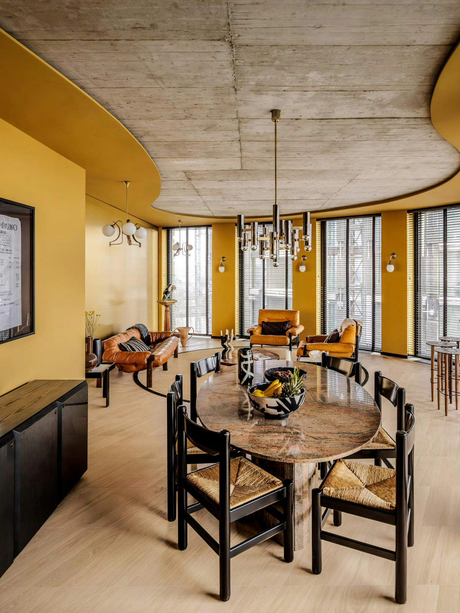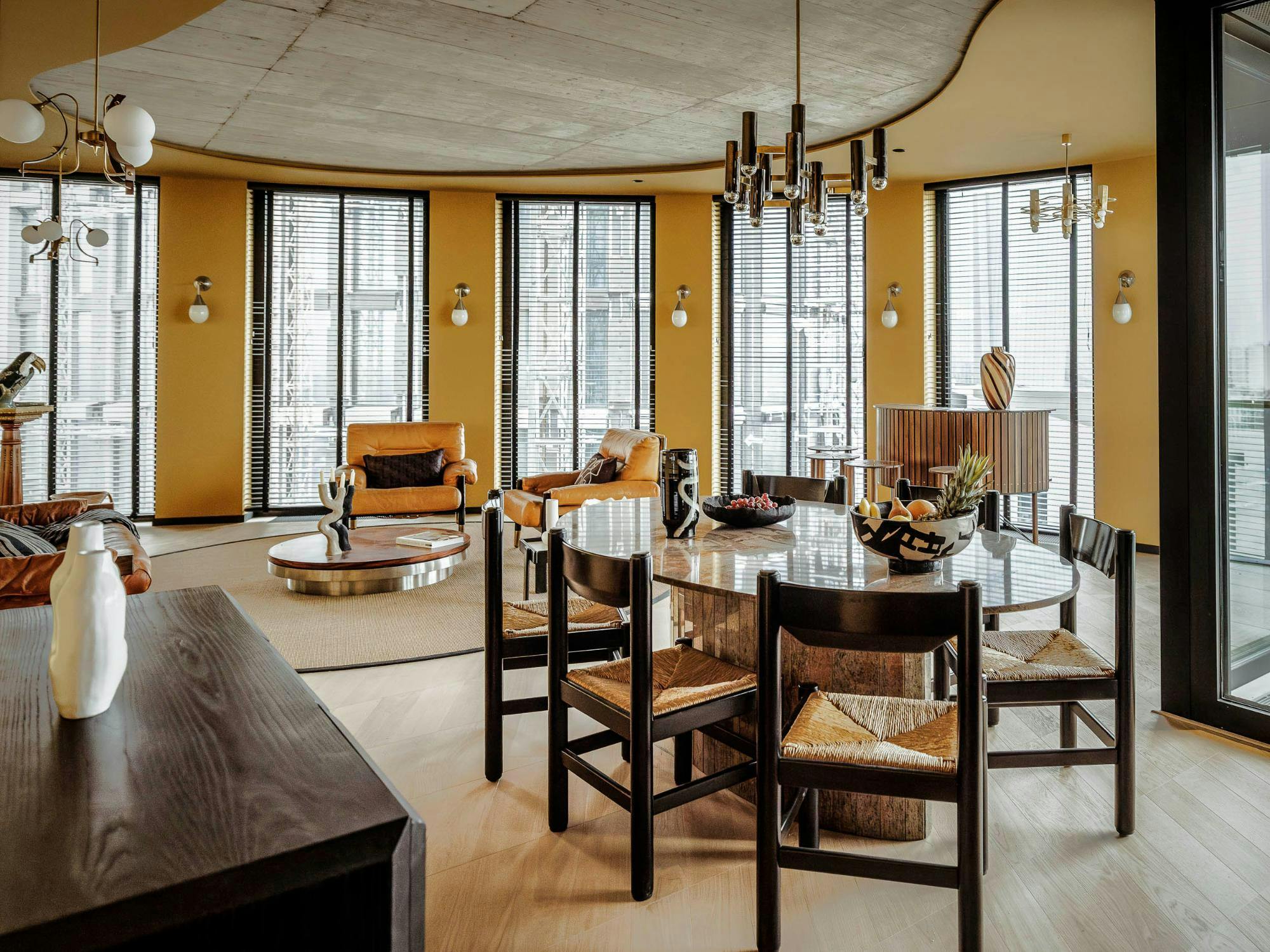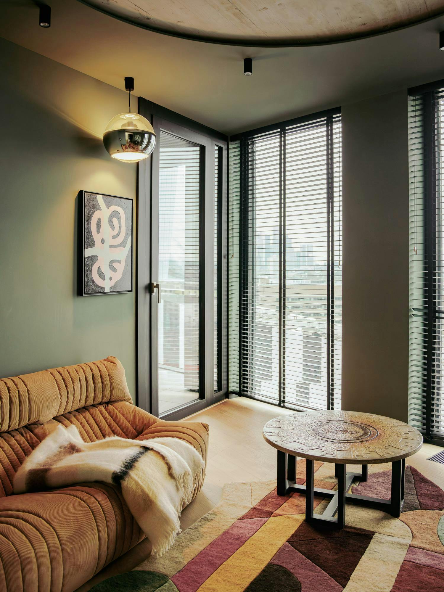 A cocoon with a view – furnished with curated vintage pieces that carry a sense of international longing. A space that quietly collects stories and offers a sense of shelter without retreating.