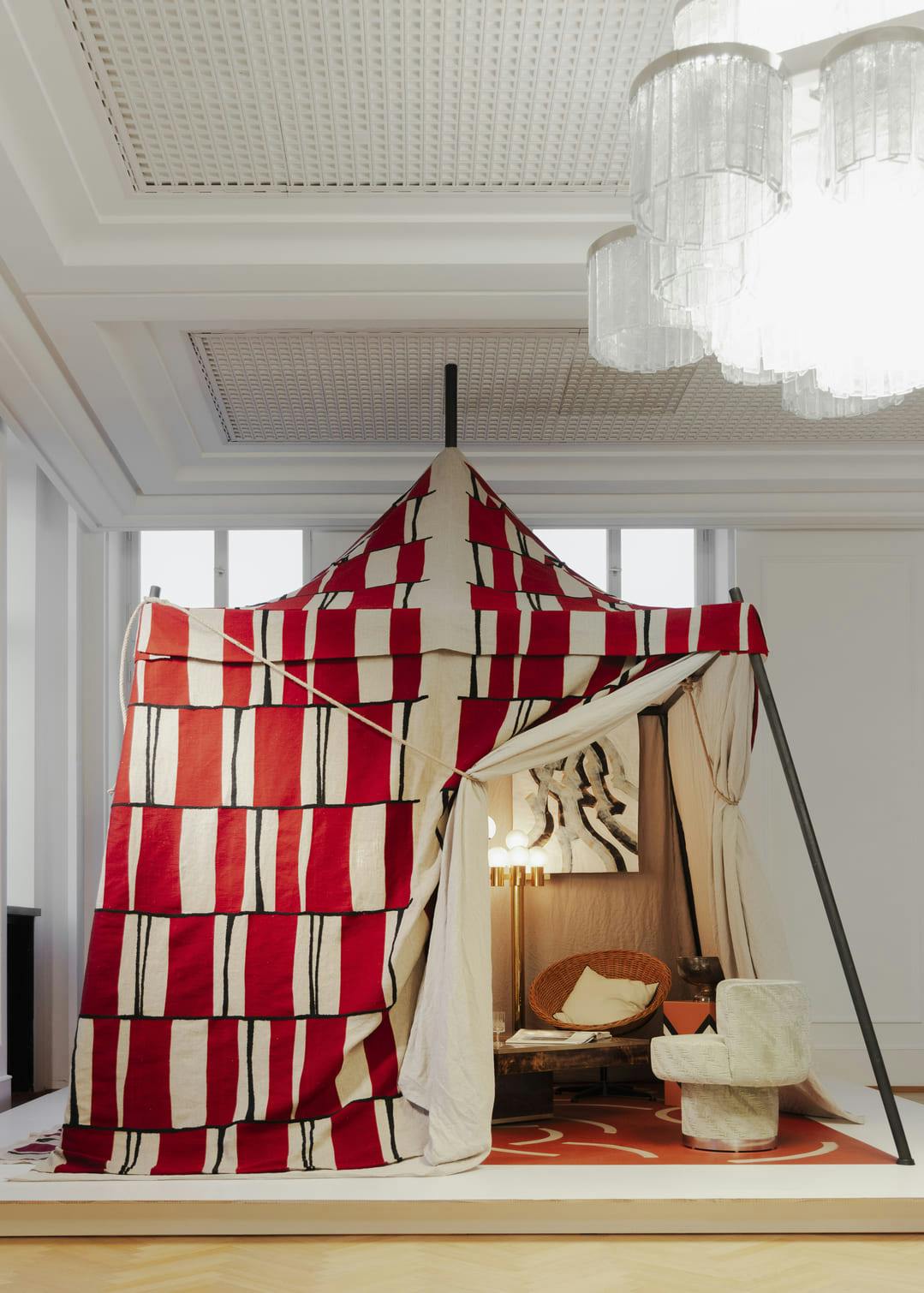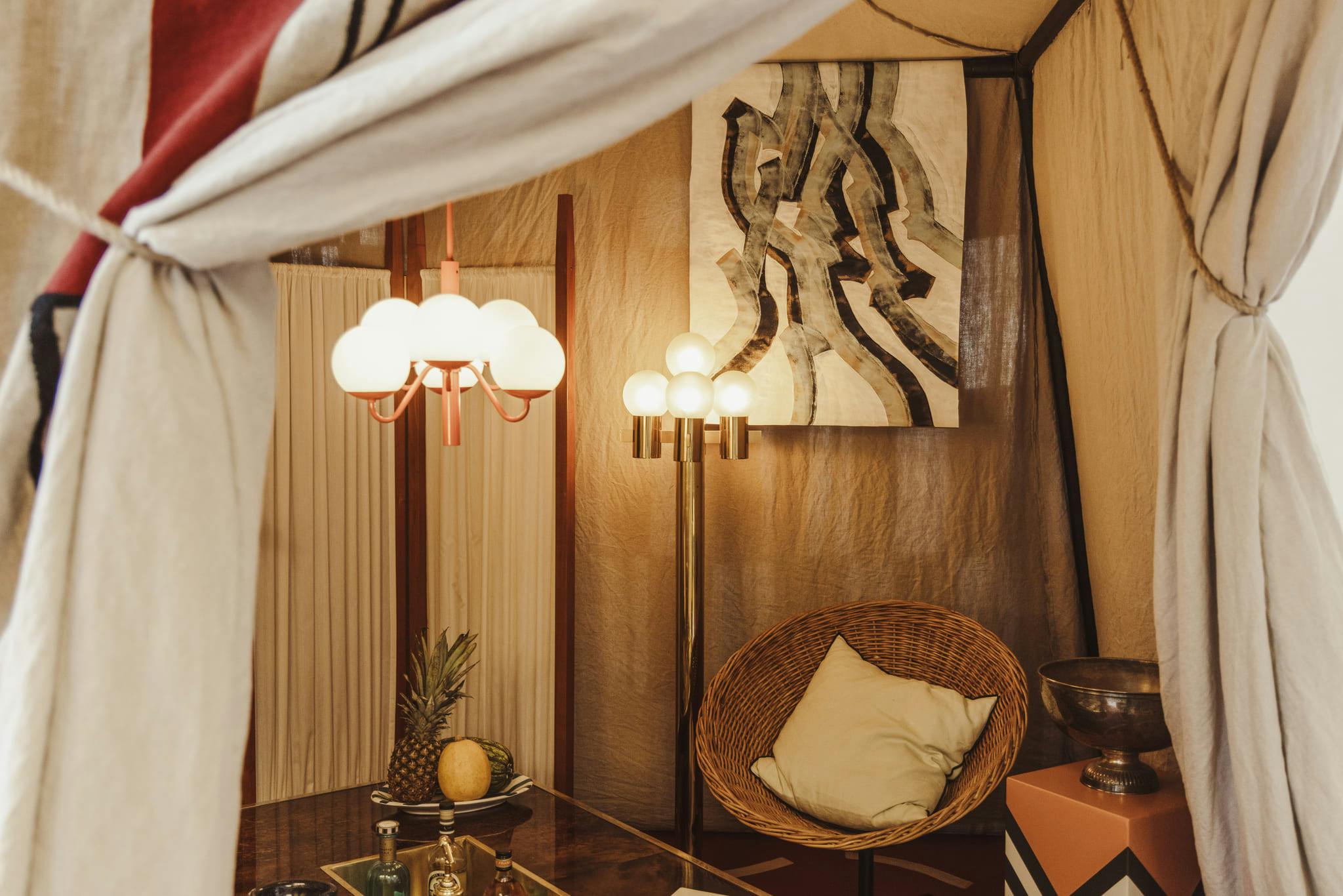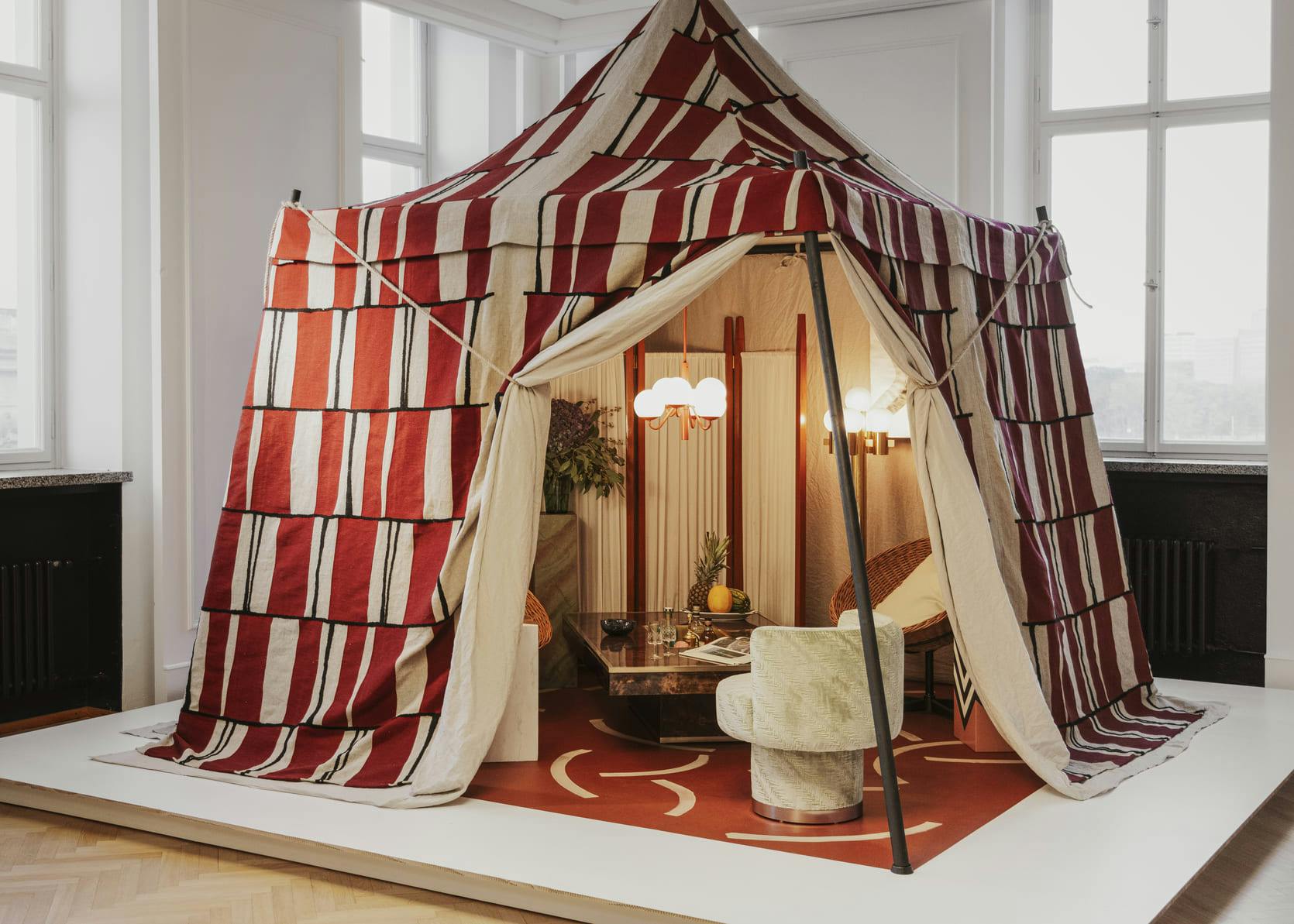 The idea of the installation is to create an introverted, isolated world that gives insight into a scenery that can neither be assigned to space nor time. Fragments of the past form a glimpse of the future. Fragmented, particular & eclectic. The tent, one of the oldest dwellings in human history, is symbolic of the changes that lie ahead in terms of habitable places. We ask ourselves the question of what these spaces are filled with. We think it is time to make more out of what we have. ECLAVE is meant to inspire dreaming as much as it is to raise questions, and invites the viewer to position themselves from a new perspective.