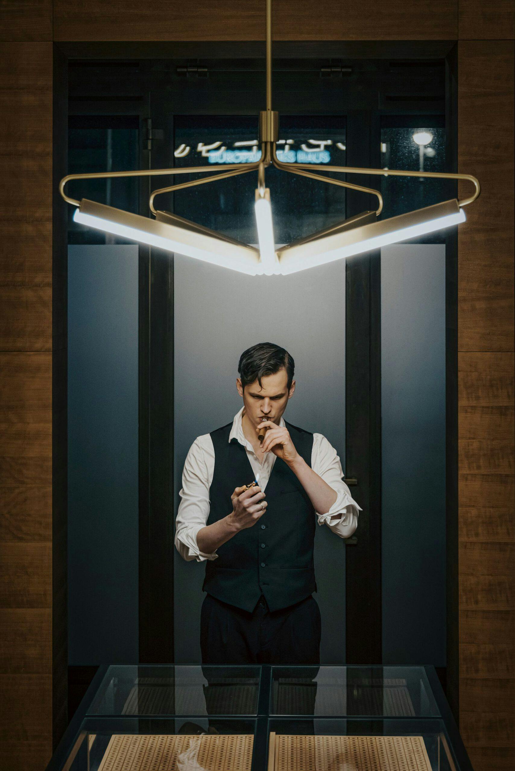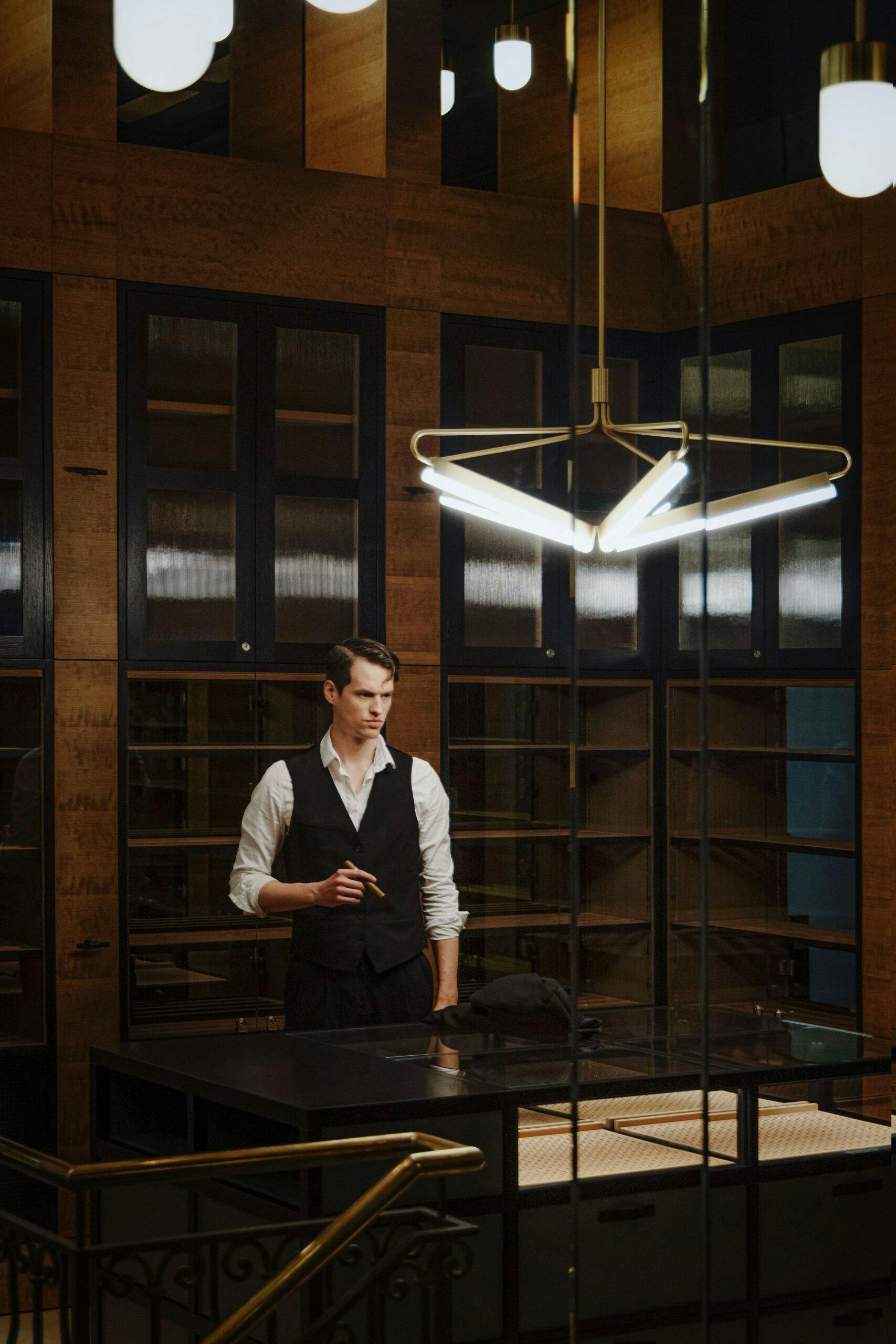 Inspired by the Loos Bar in Vienna, this space becomes the physical expression of the online cigar brand Noblego.