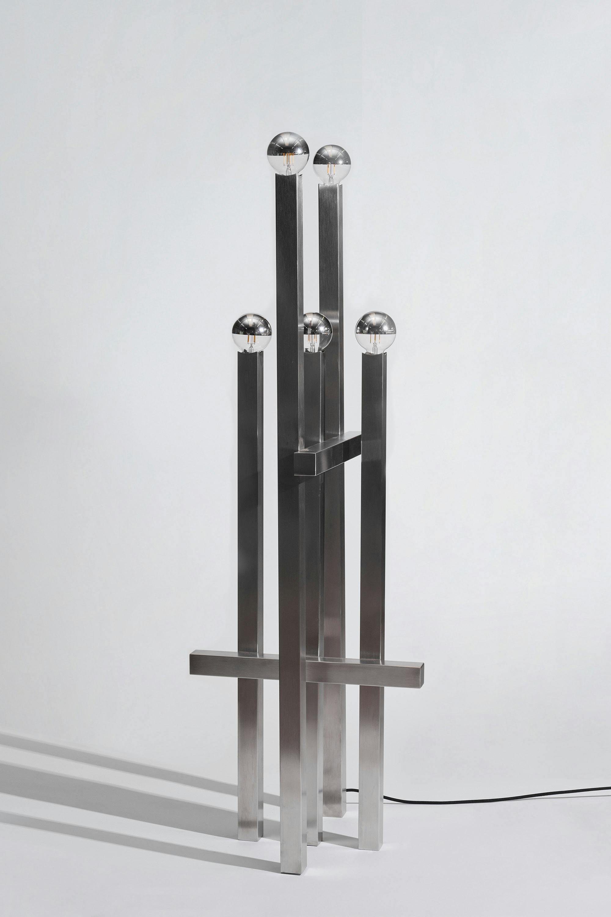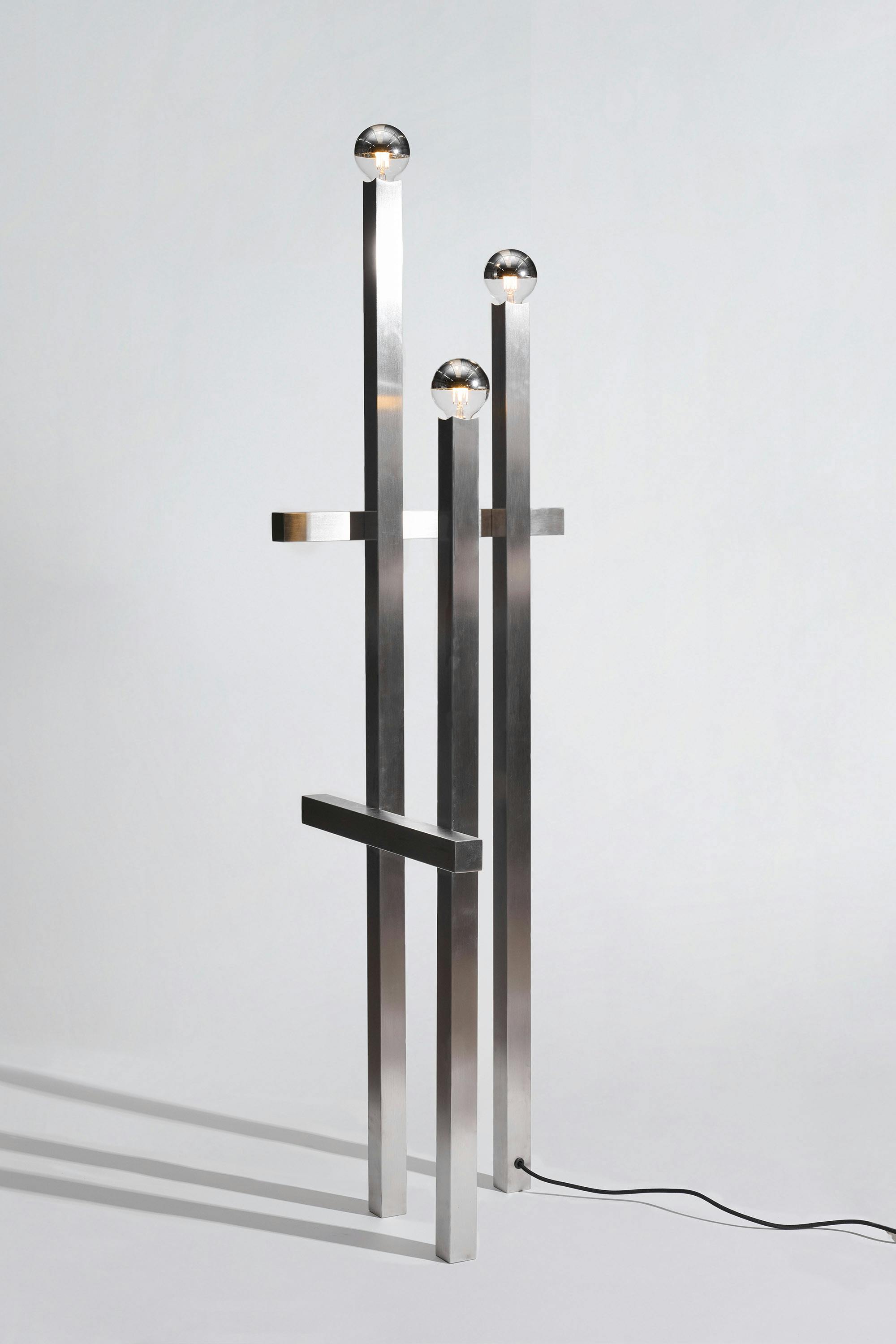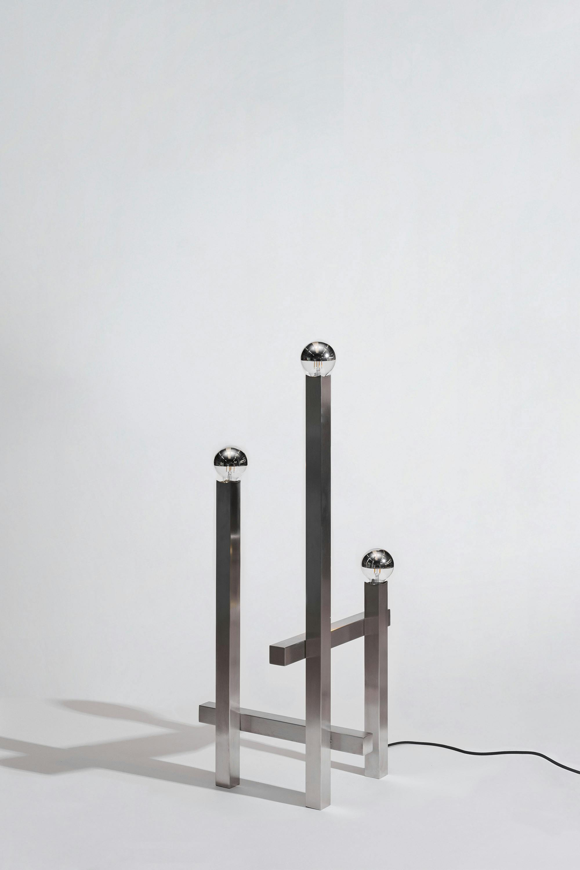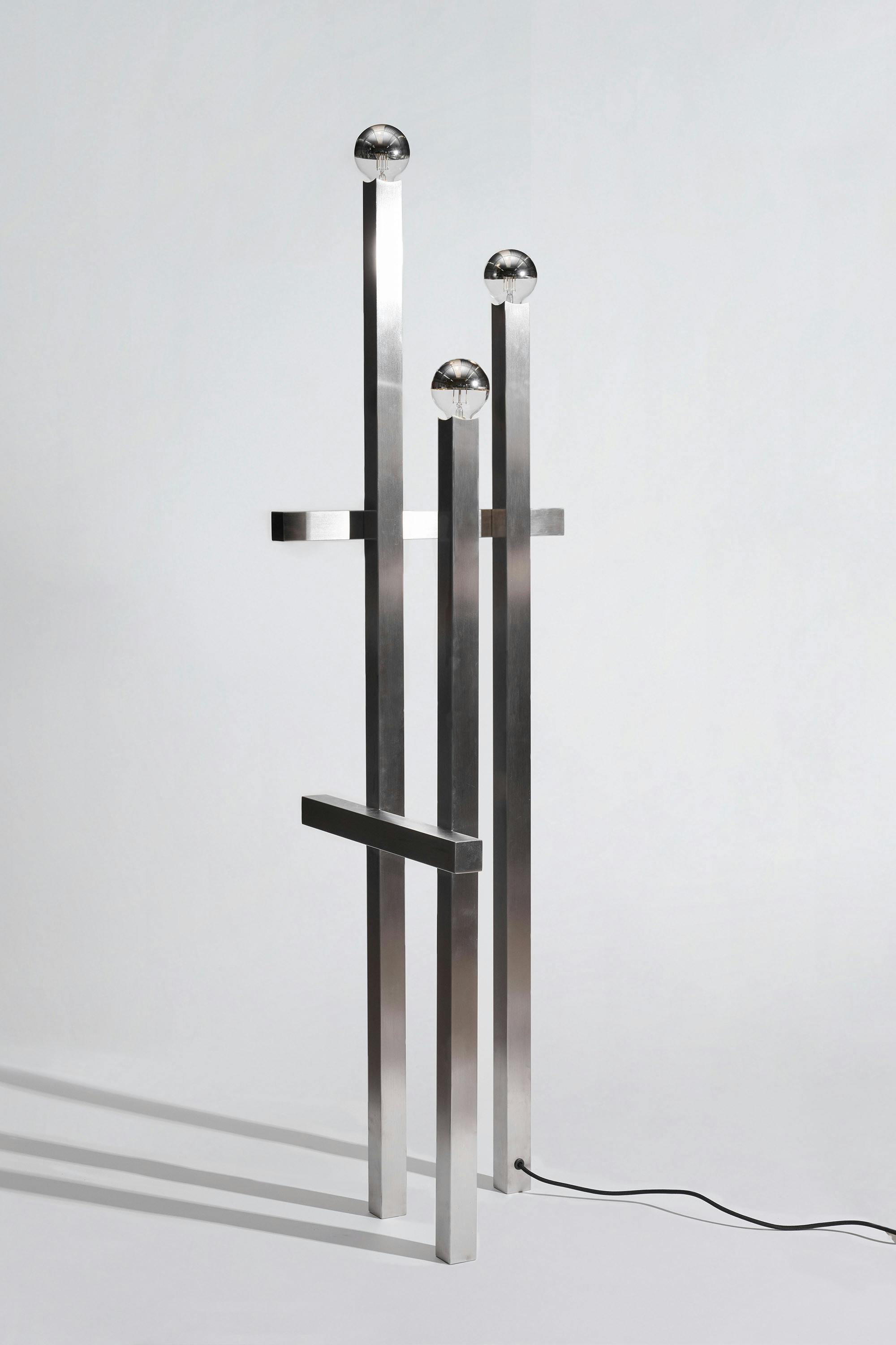 A series of nine stainless steel lamps, created for the exhibition in Palma. At once light object and sculpture, they merge technical precision with atmospheric presence. Born in a workshop dedicated to professional kitchen design, they balance strict materiality with subtle play—casting light as both function and perception.