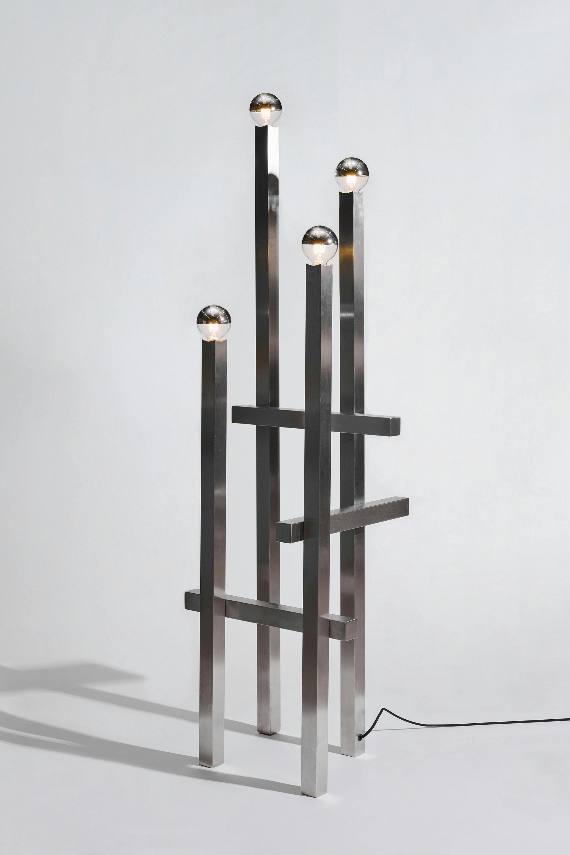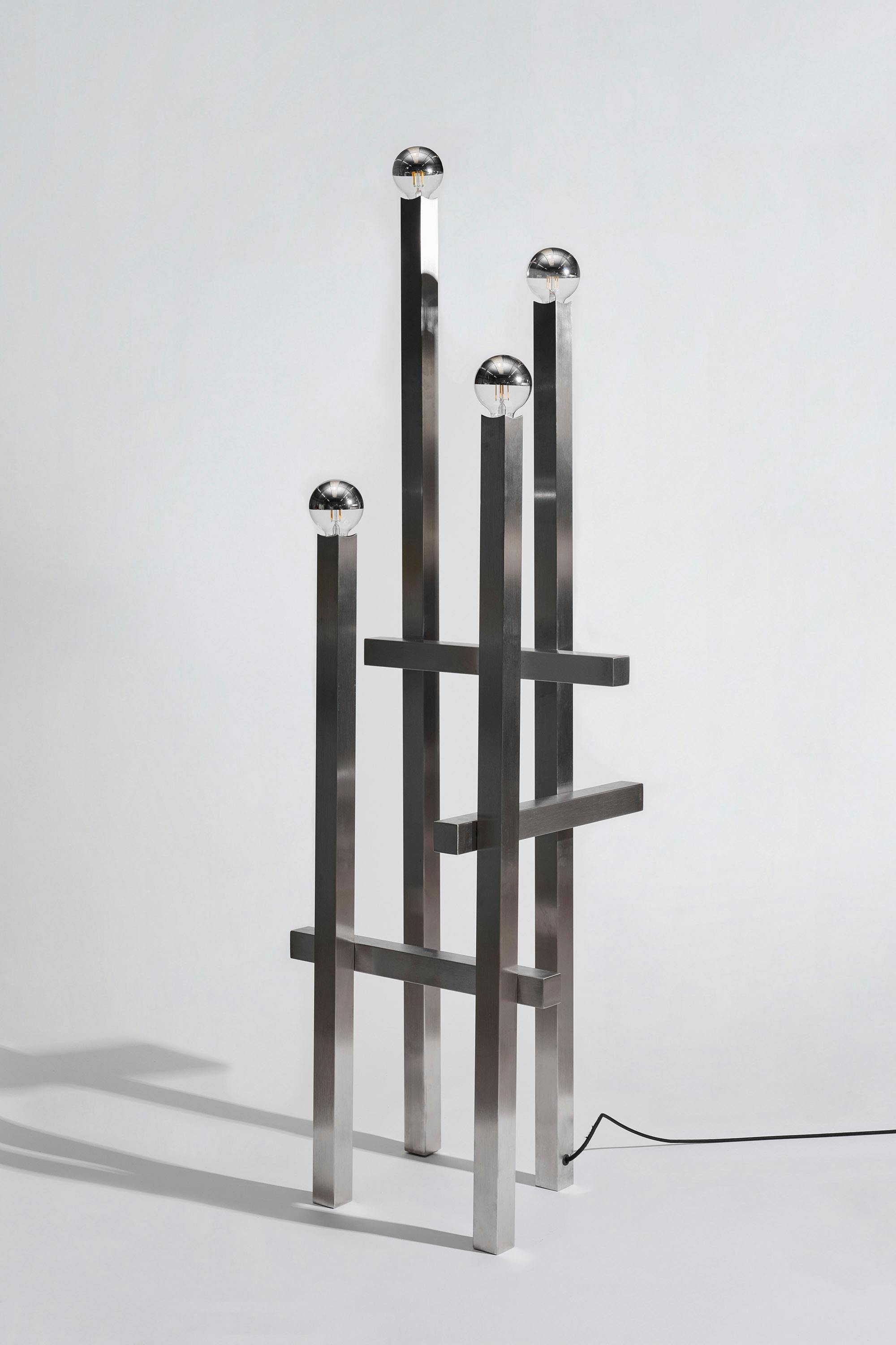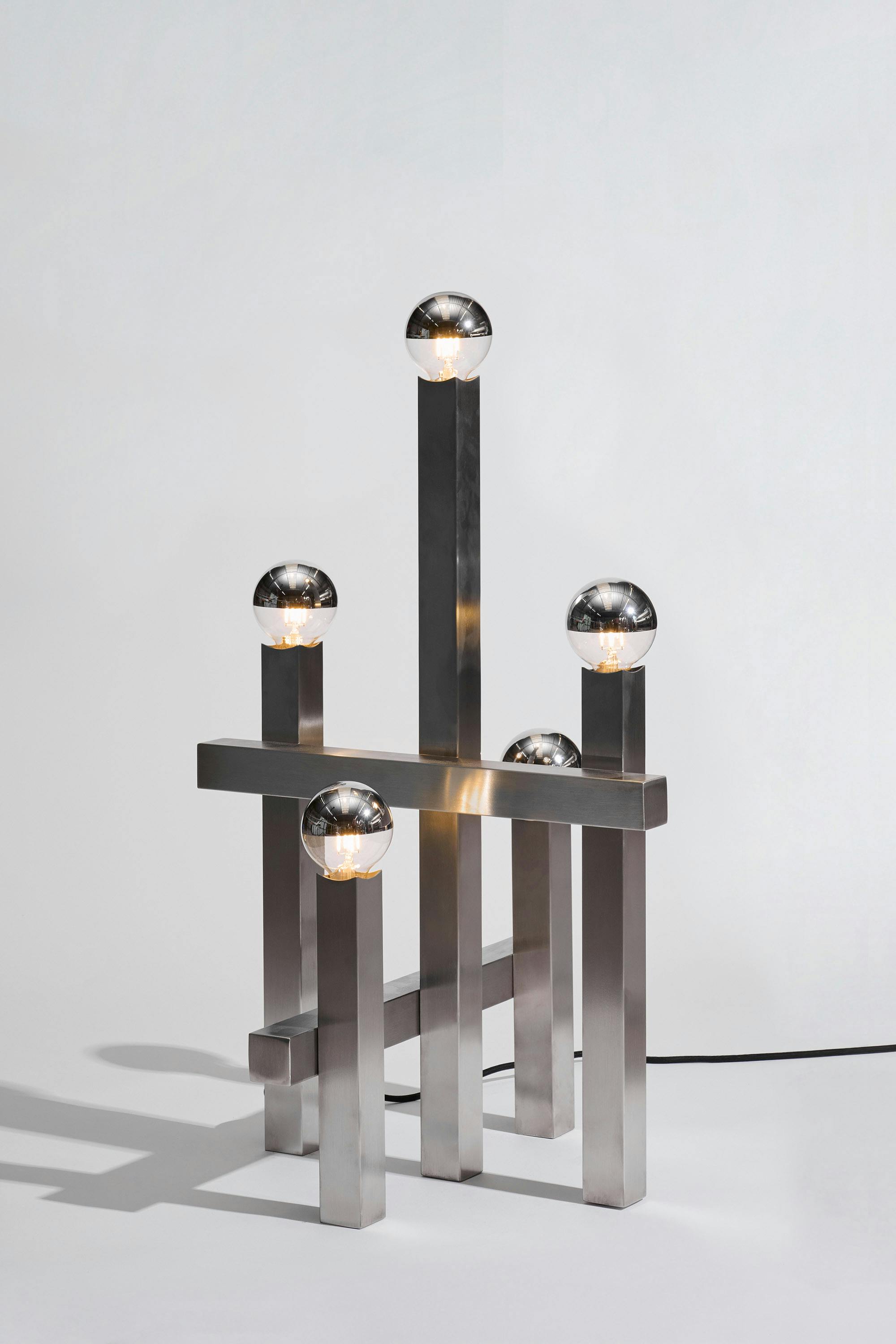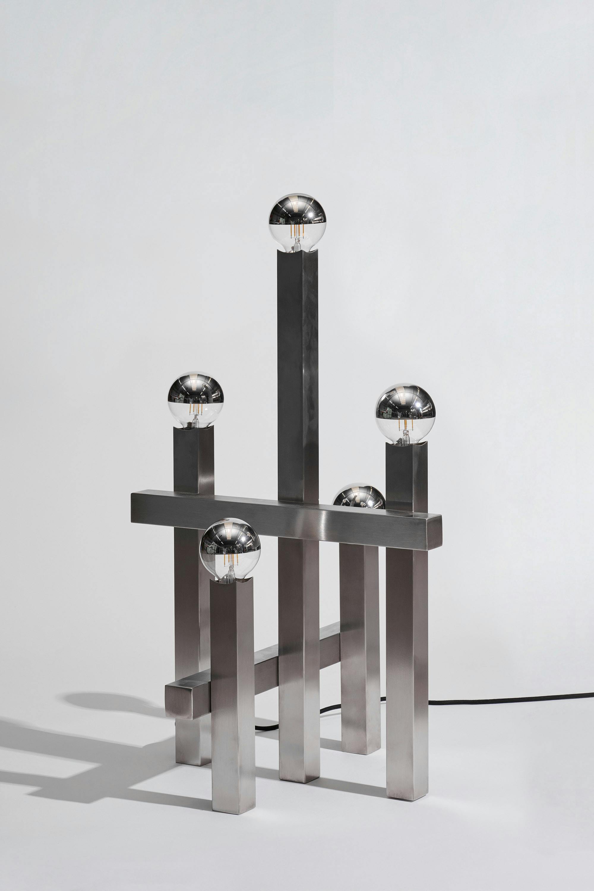 A series of nine stainless steel lamps, created for the exhibition in Palma. At once light object and sculpture, they merge technical precision with atmospheric presence. Born in a workshop dedicated to professional kitchen design, they balance strict materiality with subtle play—casting light as both function and perception.