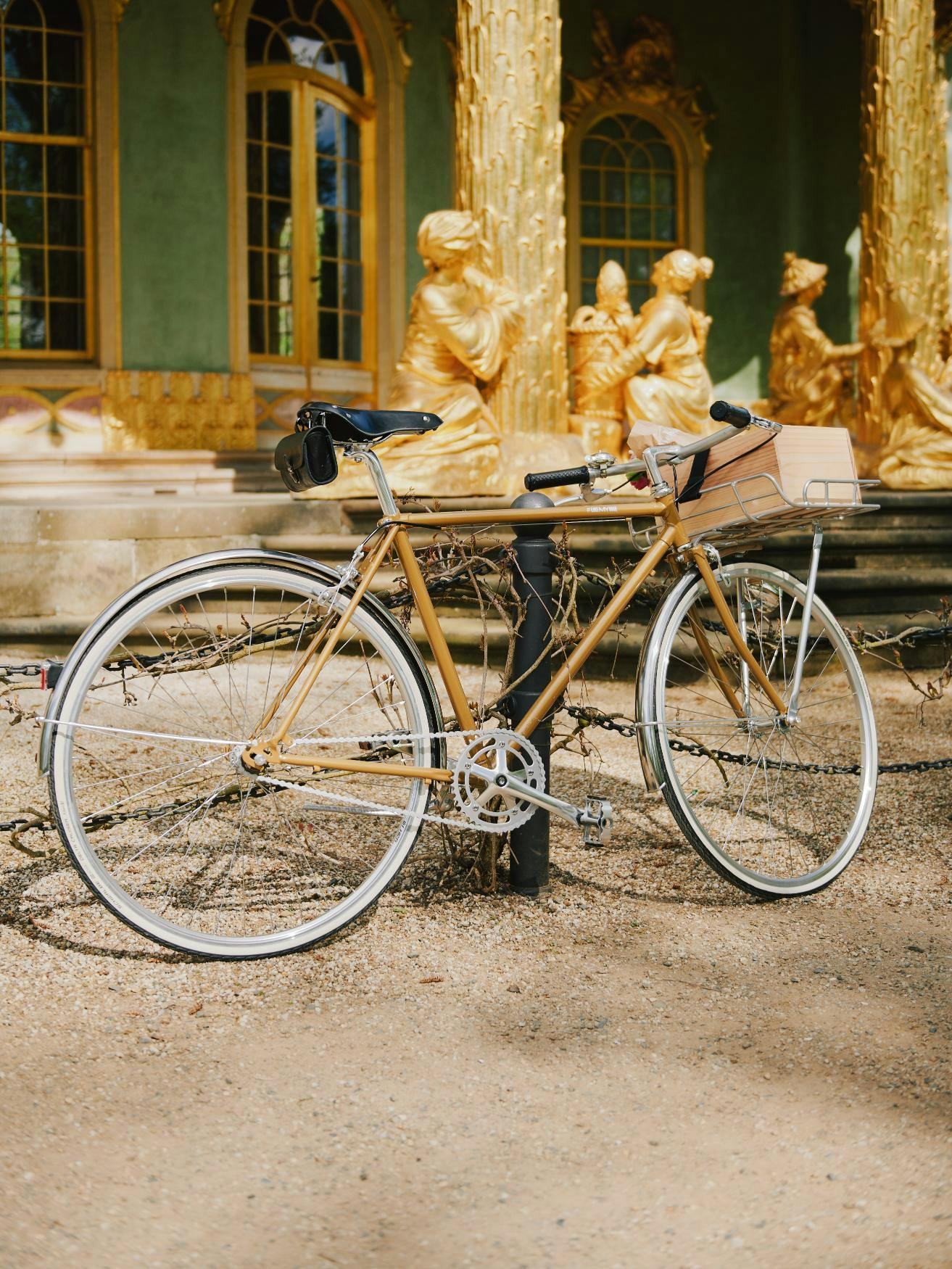 The Berlin architect and designer FABIAN FREYTAG created the bike in the style of Germany’s most popular oldie convertible, the Mercedes SL. Then as now, the glamorous and shiny chrome lines and shapes are fascinating: the SL was always intended more as a comfortable cruiser and that is exactly the intention with this noble bike. It deliberately has only one gear, which makes it extremely low-maintenance but easy to ride.