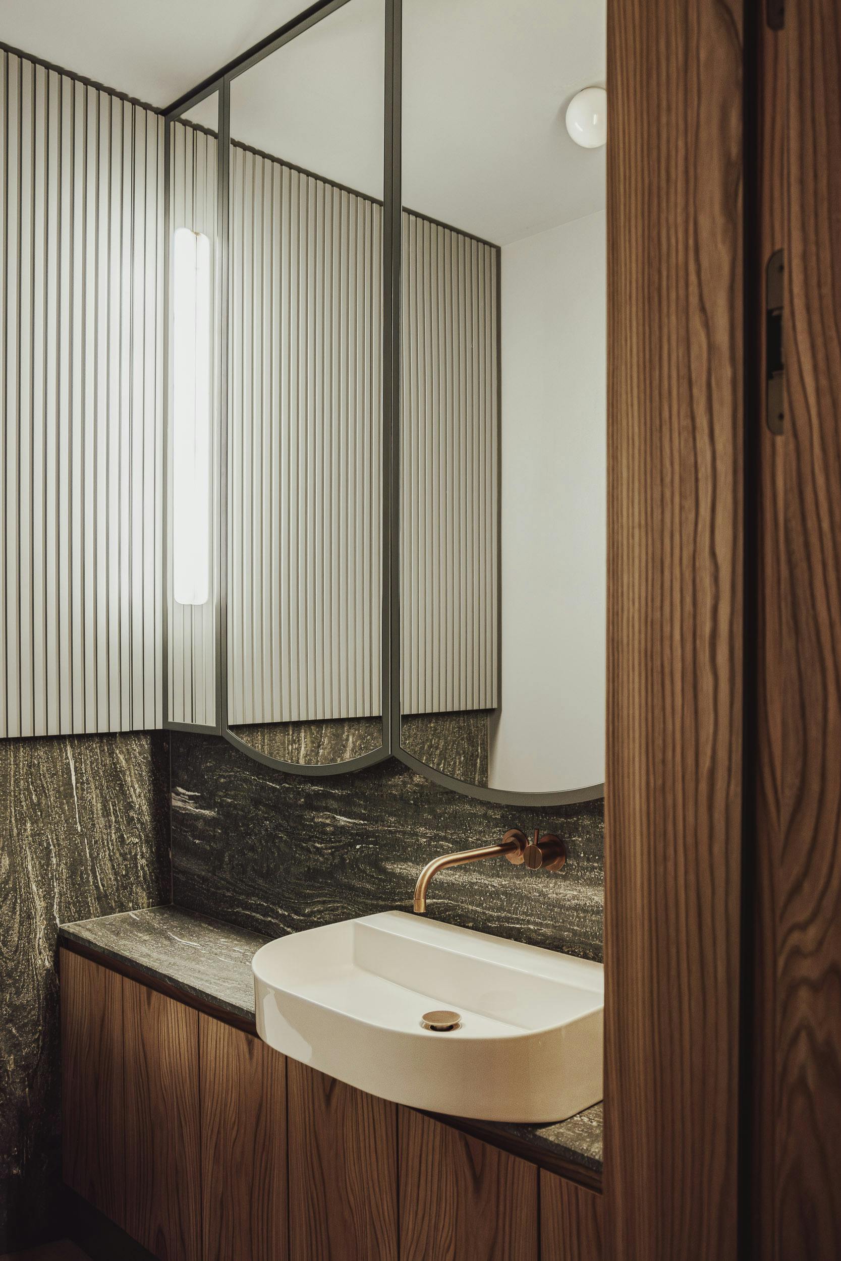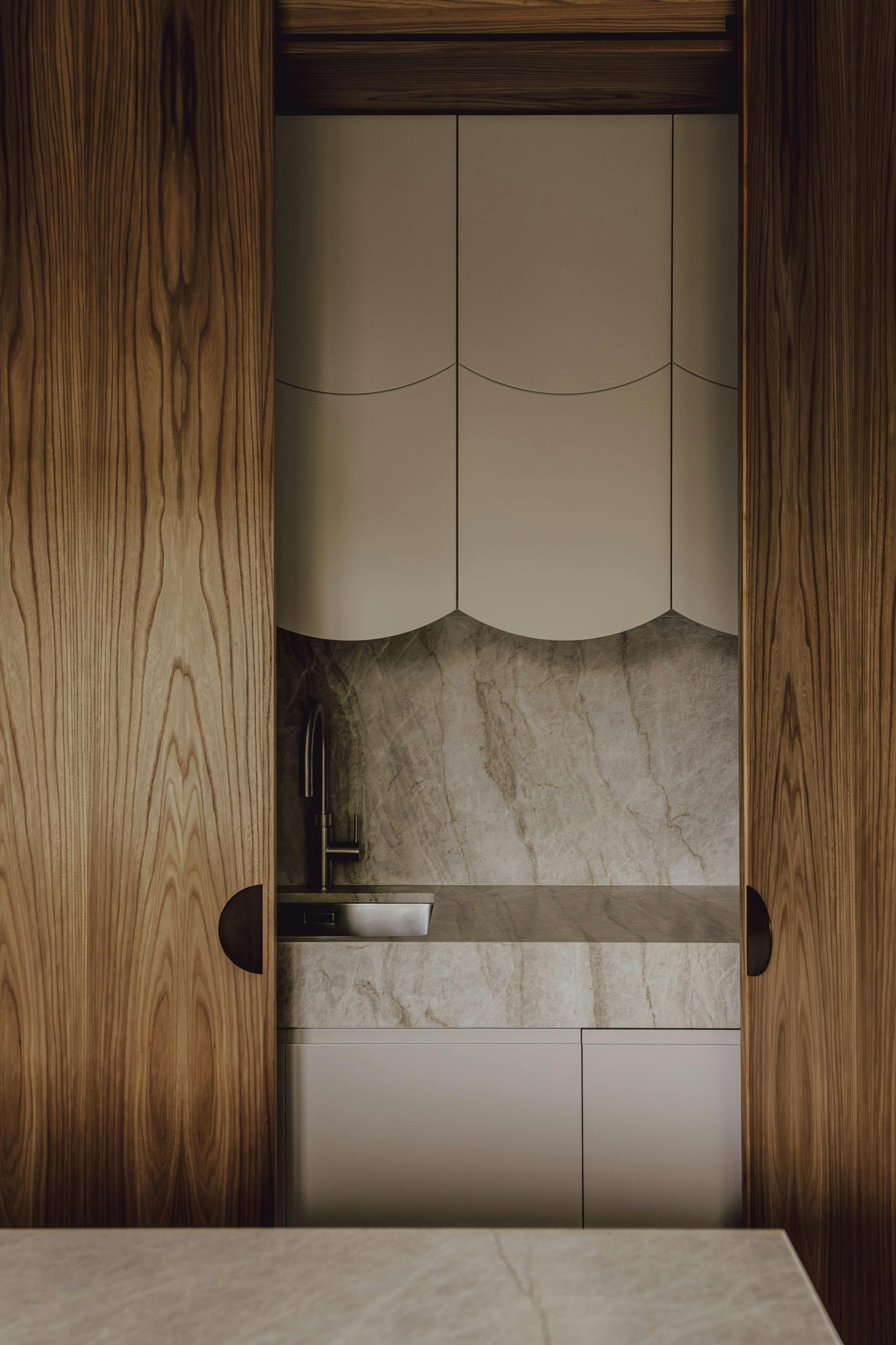 A lakeside apartment dedicated to the connection between nature and living, with every aspect – from the floor plan to the custom-designed upholstered furniture – carefully crafted.